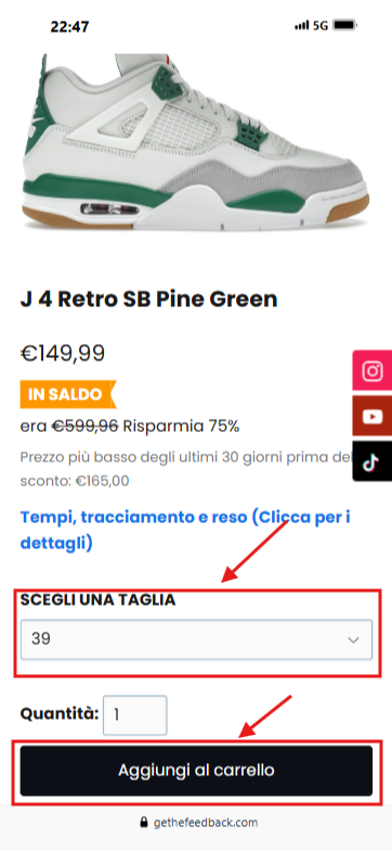 Se la logistica non viene aggiornata da un periodo prolungato, ti invitiamo a leggere attentamente l'email “ORDINE SPEDITO”, dove saranno specificati i giorni necessari per l'aggiornamento della logistica. Per qualsiasi ulteriore informazione, puoi contattare il nostro servizio clienti tramite Instagram o Email: gethefeedback2.0@gmail.com.