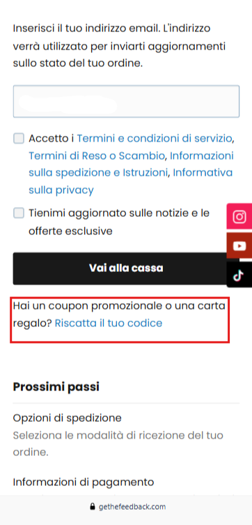 Se il pagamento continua a non andare a buon fine o se hai domande, contattaci Instagram o Email: gethefeedback2.0@gmail.com